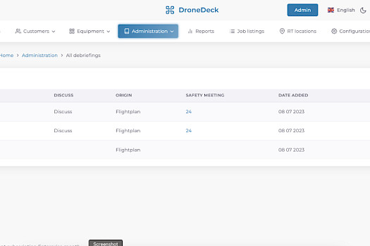Debriefings in DroneDeck worden gedefinieerd in bespreken en niet bespreken. Alle Debriefings die zijn gemarkeerd als Te bespreken worden weergegeven in de veiligheidsvergaderingen, zodat alle belangrijke gebeurtenissen van de afgelopen periode worden besproken.