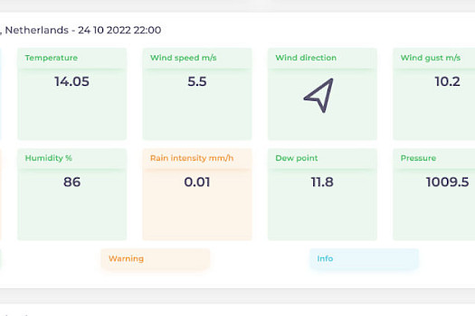 Zie in een opslag de weersomstandigheden om te bepalen of je kunt vliegen. Aan de hand van het duidelijk overzicht kun je goed zien of het veilig is om te vliegen.