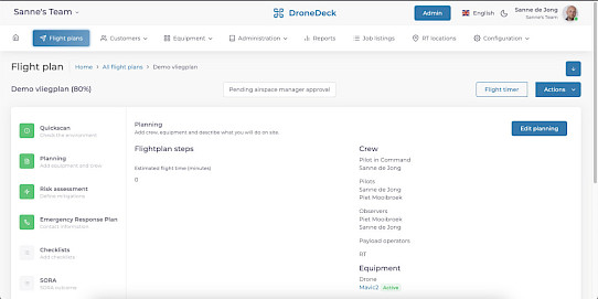 Maak vliegplannen in minuten. Maak gebruik van je gedefinieerde risico’s, mitigerende maatregelen en voeg alle operatie en locatie specifieke informatie toe.