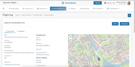 Vlucht logging van je drone operaties is de basis voor een groot aantal rapportages binnen DroneDeck. Op basis hiervan weet hoeveel uren een drone heeft gevlogen, hoeveel uren een crewlid heeft gemaakt.